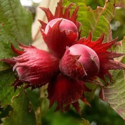 Саженцы фундука Сирена отличаются среднерослым размером и широкой, густой кроной, что делает их идеальными для использования в садовых композициях. Листья у растения крупные — длиной 10-11 см и шириной 9 см. Сперва они имеют ярко-зеленый оттенок, а осенью великолепно окрашиваются в бордовые тона, придавая вашему саду еще больше выразительности.