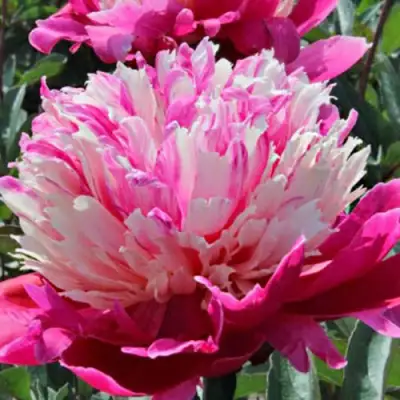 У данного пиона махровые корончатые цветки, каждый диаметром до 15 см. Внешние лепестки ярко-малиновые, тогда как внутренние – кремовые с малиновыми мазками, что создает эффект двухцветности. Яркие, насыщенные цвета и бомбовидная форма цветка придают 'Дейдрим' изящество и утонченность. Лепестки: внутренние – резные, внешние – округлые, сопровождающиеся сладким, нежным и тонким ароматом.
