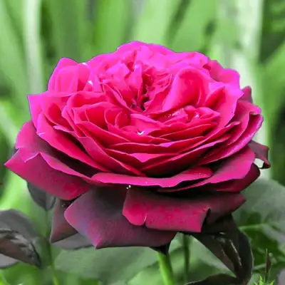 Цветки чайно-гибридной розы имеют классическую бокаловидную форму и крупный диаметр — 8–10 см. Бутоны густомахровые, насыщенного розово-малинового оттенка с бархатистым отблеском, который делает их особенно выразительными на фоне зелени. Цветение начинается в начале лета и продолжается до поздней осени благодаря повторному цветению — ремонтантности сорта. Аромат у «Графини Дианы» насыщенный, теплый, с нотками фруктов и пряностей, что делает этот сорт привлекательным не только визуально, но и для любителей благоухающих садов.