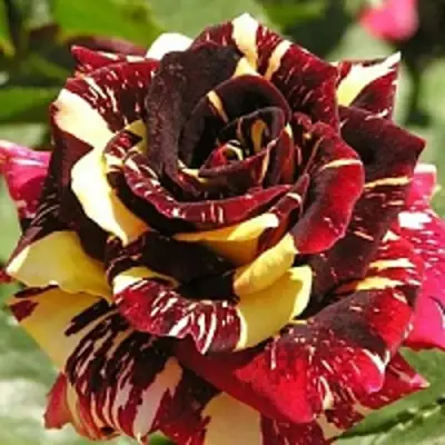 Окраска бутона этой розы яркая и привлекательная - темно-красная с оранжево-желтыми штрихами и полосами. Цветок сам по себе также имеет темно-красную окраску с оранжево-кремовыми и желтыми штрихами и полосами. Основная окраска цветка - красная.