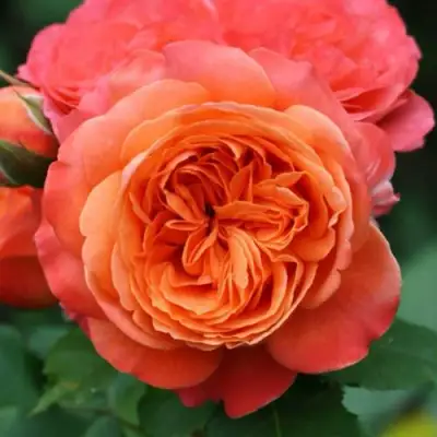 Цветки этого сорта поражают своей красотой и богатством оттенков. Окраска бутона варьируется от красно-оранжевого до яркого оранжево-алого, что делает растение настоящим акцентом в вашем саду. Цветки большого размера (до 11-12 см в диаметре) имеют округлую форму бутона и чашевидную или даже розетковидную структуру. Густомахровый тип цветка с 60-80 лепестками излучает сильный фруктовый аромат, дополненный нотами розового масла, абрикоса и белого перца. Данное сочетание делает Эмильен Гийо не только визуально привлекательным, но и незабываемо приятным для обоняния.
