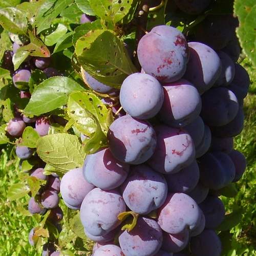 Саженцы сливы Награда неманская низкорослое дерево высотой 2,5 метра с полушаровидной, раскидистой и редкой кроной. Это идеальный выбор для небольших участков, где ценится каждый сантиметр. Плоды данного сорта впечатляют своими размерами (43-45г) и привлекательной окраской: основная цветовая гамма красная, а покровная синяя, с тонким восковым налетом светло-голубого оттенка. Кожица у плодов тонкая, прочная, легко снимается, а мякоть плотная, нежная и сочная с оранжевым цветом и зеленоватым оттенком.