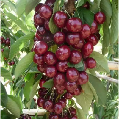 Саженцы вишни «Королева» радуют своим цветением в мае, когда деревья окутываются нежным цветом крупных цветков. Плоды данного сорта имеют средний размер (около 7 г), округлую форму и обладают темно-красной окраской. Их нежная и гладкая кожура укрывает сочную мякоть насыщенного темно-красного цвета с кисло-сладким вкусом. Косточка хорошо отделяется от мякоти, что делает их идеальными для не только свежего употребления, но и для переработки. Срок хранения плодов составляет от 10 до 14 дней, что обеспечивает их транспортировку и хранение.